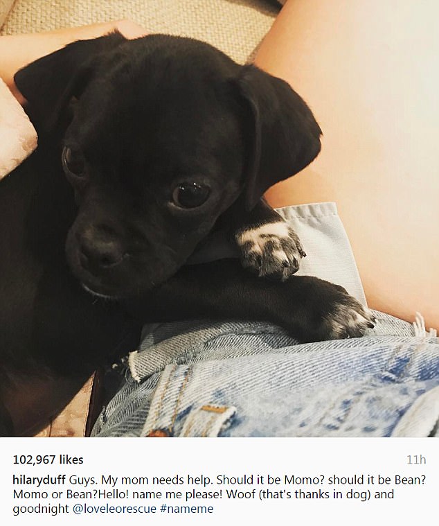 Η 29χρονη φωτογραφήθηκε με το ασπρόμαυρο σκυλάκι, ράτσας ημίαιμο pug chihuahua, ζητώντας μάλιστα να ψηφίσουν οι φίλοι της για ο όνομά του. Το μικρό ονομάζεται Mojito αλλά η σταρ θέλει να το αλλάξει, έχοντας δυο στο μυαλό της, το Momo και το Bean.
