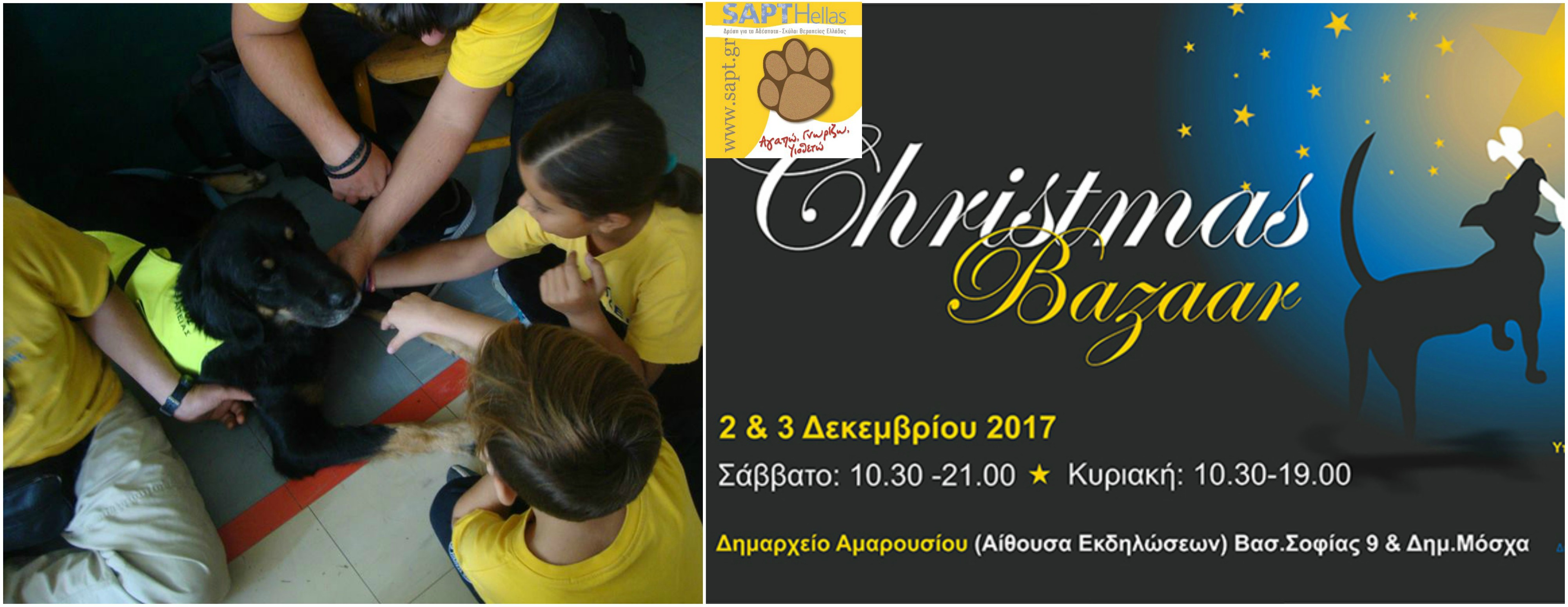 Όπως κάθε χρόνο έτσι και φέτος η SAPT διοργανώνει το χριστουγεννιάτικο παζάρι της προσκαλώντας μικρούς, μεγάλους αλλά και τετράποδους φίλους να το επισκεφτούν και να συμβάλουν όπως μπορούν στο έργο της.