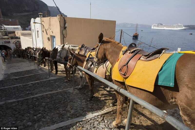 Η βρετανική εφημερίδα Daily Mail σε ρεπορτάζ της που δημοσίευσε στις 6 Μαΐου 2018 καταγγέλλει την κατ’ εξακολούθηση κακοποίηση των γαϊδουριών στη Σαντορίνη που εξαναγκάζονται κάτω από τον καυτό ήλιο να ανεβαίνουν έως και πέντε φορές την ημέρα τα 520 πλακόστρωτα σκαλοπάτια για να μεταφέρουν τους τουρίστες από το λιμάνι στα Φηρά.