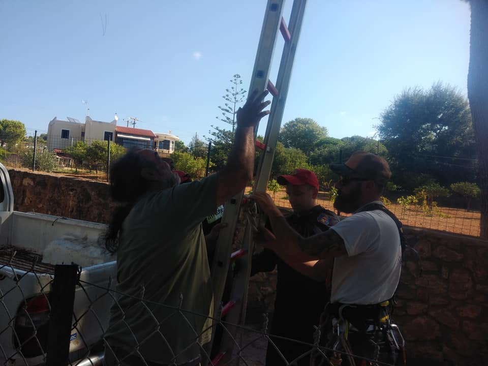 Έτσι ζητήσαμε εκ νέου τη βοήθεια της πυροσβεστικής για τρίτη φορά για να μας φέρει τη μεγάλη σκάλα της για να επιχειρήσουμε τη διάσωσή της, αυτή τη φορά από το έδαφος..