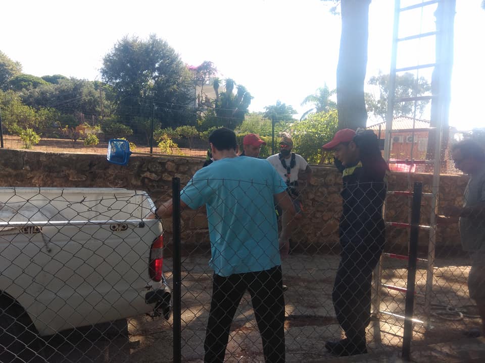Καλέσαμε ιδιώτη με γερανό τον κ. Παπαδάτο Σπύρο (κάλπη) για να μας βοηθήσει στη προσπάθειά μας ενώ καλέσαμε και την αστυνομία για να εξηγήσει στον ιδιοκτήτη τα ..αυτονόητα…