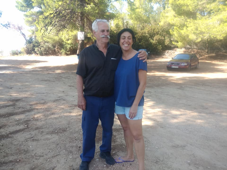 Ο κύριος Καλαφάτης έφερε το αγροτικό του. Εκεί στηρίξαμε τη σκάλα και με τη βοήθεια μιας μεγάλης απόχης που μας έφερε η κόρη του Μαριάννα σιγά σιγά με προσοχή οι πυροσβέστες μας κατάφεραν και έσπρωξαν τη γατούλα προς τα χαμηλότερα διπλανά δένδρα και από εκει στο απέναντι λοφίσκο της ελευθερίας της !!!!