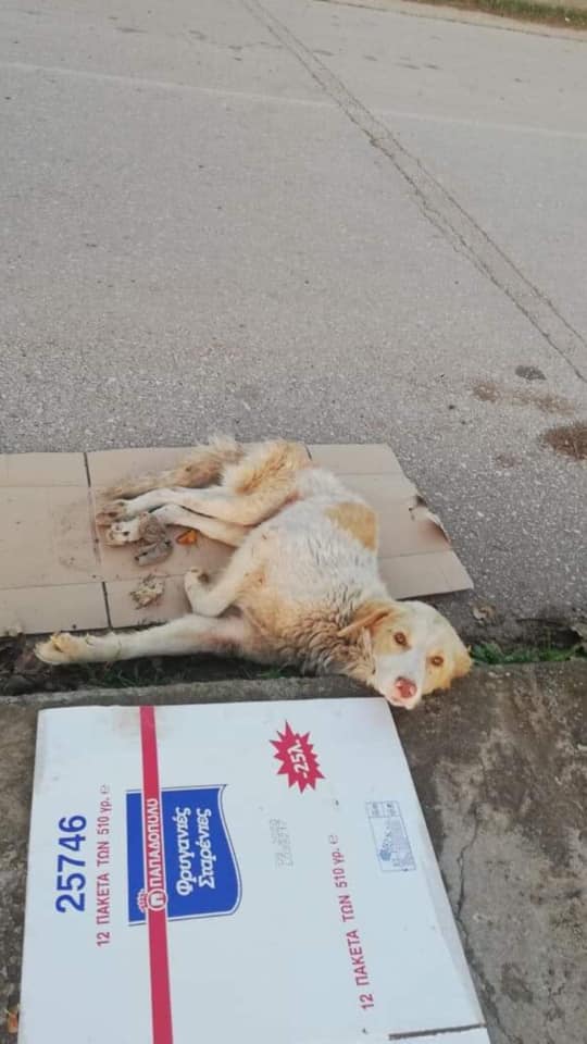 Το σκυλάκι αυτό έμεινε χτυπημένο 4 μέρες στο δρόμο, χωρίς καμιά βοήθεια. Στην άκρη του δρόμου να αργοπεθαίνει. Πολλοί το προσπέρασαν αλλά κανένας δεν νοιάστηκε για αυτό. Ο βασικός όμως που πρέπει να νοιαστεί, σύμφωνα με τη νομοθεσία, είναι ο δήμος. Οι άνθρωποι του δήμου πληρώνονται από εμάς, κάτι που μονίμως ξεχνούν. Αλλά κανείς δεν έδειξε την παραμικρή ευαισθησία, την παραμικρή ανθρωπιά. Αν πονούσε; Αν υπέφερε;