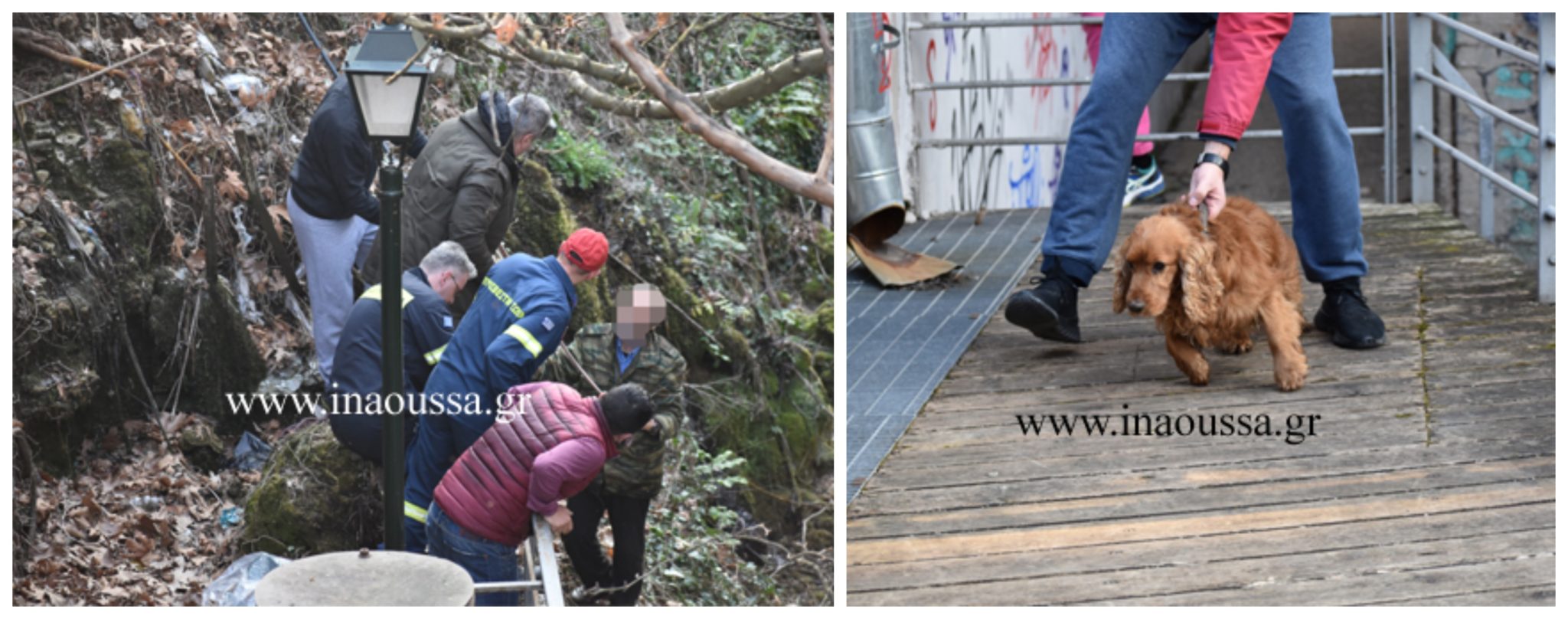 Ο άνδρας προσπάθησε να βοηθήσει το άτυχο ζώο που βρέθηκε στις απότομες πλαγιές του ποταμιού κατεβαίνοντας ο ίδιος στο ποτάμι. Μην μπορώντας να πλησιάσει τον σκύλο του κάλεσε σε βοήθεια.