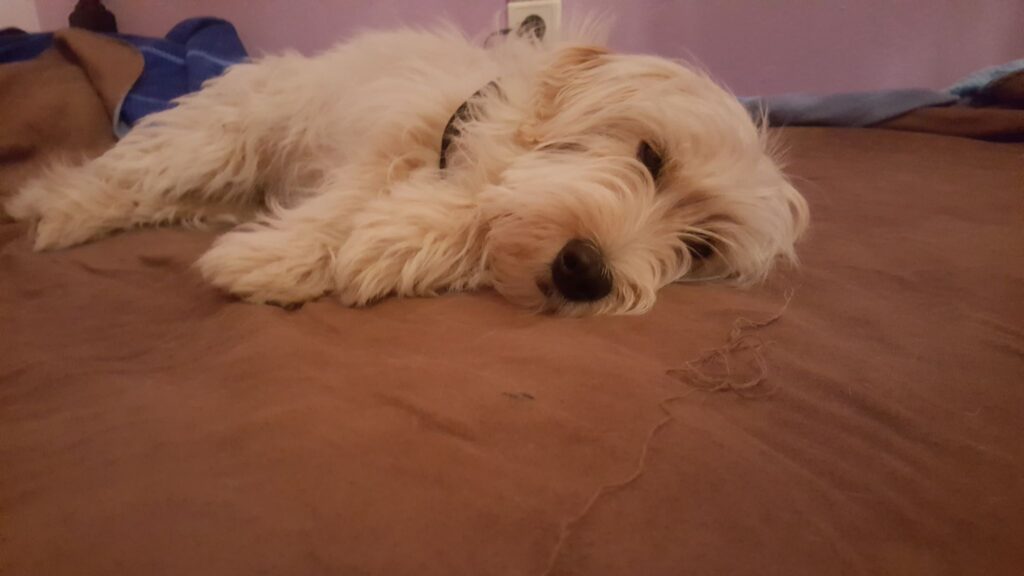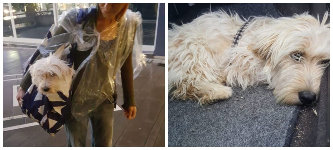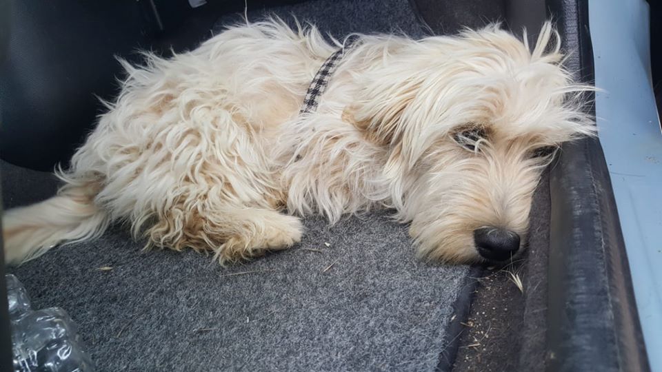 Εθελοντές του συλλόγου, πηγαίνοντας να ταΐσουν αδέσποτα στο βουνό, είδαν το σκυλάκι, το οποίο ήταν πολύ φοβισμένο και έτρεχε. Μετά από λίγη ώρα κατάφεραν να το πιάσουν και το μετέφεραν στον κτηνίατρο.