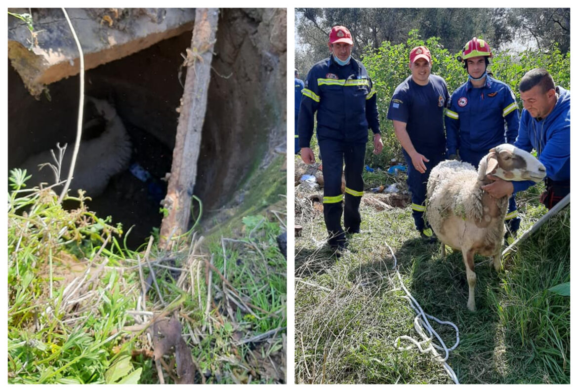 Μέγαρα, μια δύσκολη διάσωση: Η Πυροσβεστική απεγκλώβισε έγκυο προβατίνα που έπεσε σε πηγάδι (ΦΩΤΟ)
