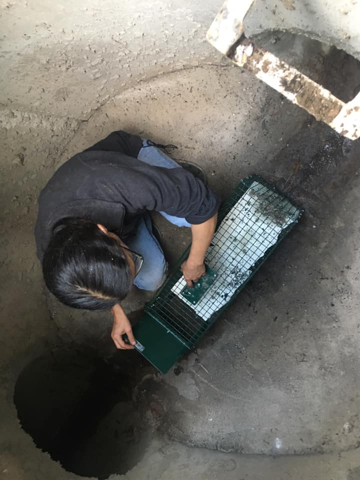 Και όχι, ο μικρός, που είχε βάλει σκοπό να μας ξεκάνει, δεν είχε πλησιάσει την παγίδα καθώς δεν είχε φύγει από το φρεάτιο στο οποίο είχε πλέον κουρνιάξει. Μπροστά στο φόβο της επικείμενης βροχής οι εθελοντές μας αποφασιστικά επιχείρησαν να περιορίσουν το φοβικό μικρούλη στο επίμαχο φρεάτιο.