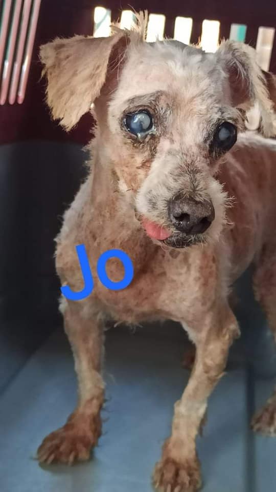 Είναι η ιστορία του Τζο, ενός ηλικιωμένου-πάνω από 10 ετών- σκυλάκου που ανέλαβε η ομάδα πριν από έναν περίπου μήνα. Ο Τζο είναι τυφλός, ελάχιστα κιλάκια και είχε σκουλήκι της καρδιάς για το οποίο έλαβε την κατάλληλη θεραπεία. Η αρχική κατάστασή του και η εμφάνισή του φαίνεται στις πιο κάτω φωτογραφίες.