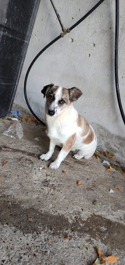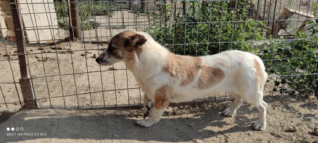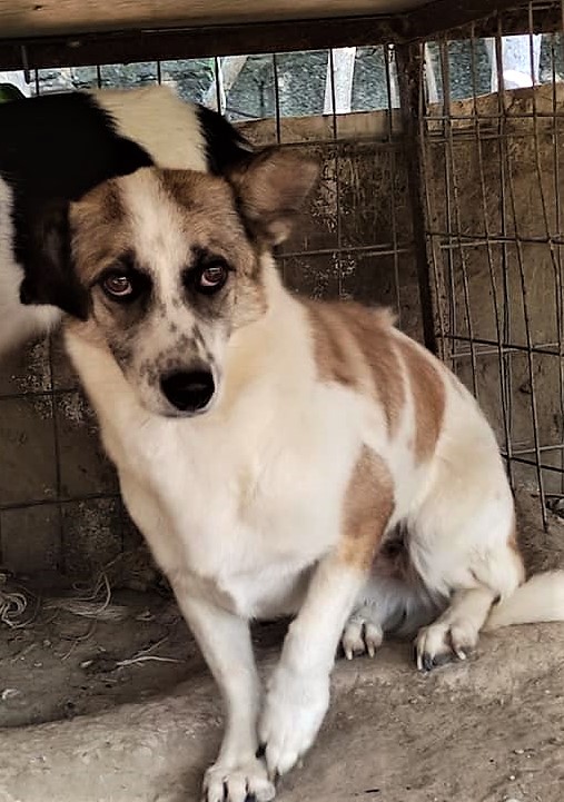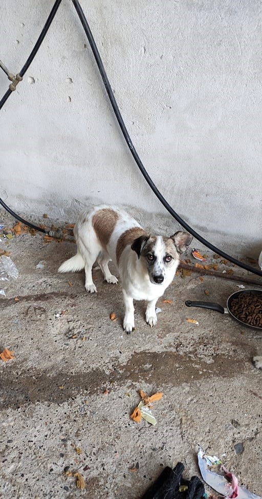 Οι εθελοντές της ομάδας ΚυΜα ΟΕΦ Ομάδα Εθελοντών Φιλόζωων Κυμίνων -Μαλγάρων & Φίλων το πήραν για να το σώσουν. Δεν υπήρχε όμως χώρος για να πάει. Σαν αποτέλεσμα την περισσότερη ώρα της μέρας την περνάει μέσα σε κλουβί. Δεν είναι ζωή αυτή για ένα σκυλάκι.