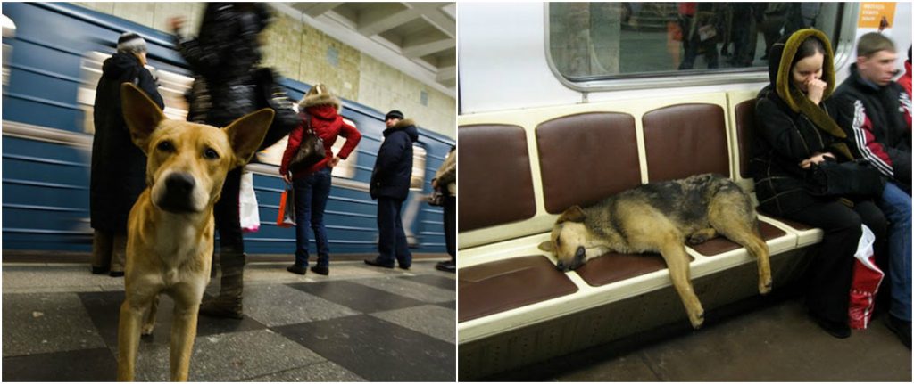 Σήμερα υπάρχουν πάνω από 35000 αδέσποτα σκυλιά στη Μόσχα. Ένας μεγάλος αριθμός από αυτά, περίπου 500, βρίσκει καταφύγιο, κυρίως όταν ο καιρός είναι άσχημος, στον υπόγειο σταθμό του Μετρό της πόλης. Αυτό συμβαίνει εδώ και πολλά χρόνια, με αποτέλεσμα οι επιβάτες να θεωρούν απόλυτα φυσιολογικό το ότι θα συνταξιδέψουν με ένα σκύλο. Τους έχουν επίσης φτιάξει χάρτινα κουτιά για να μπορούν να κοιμούνται.