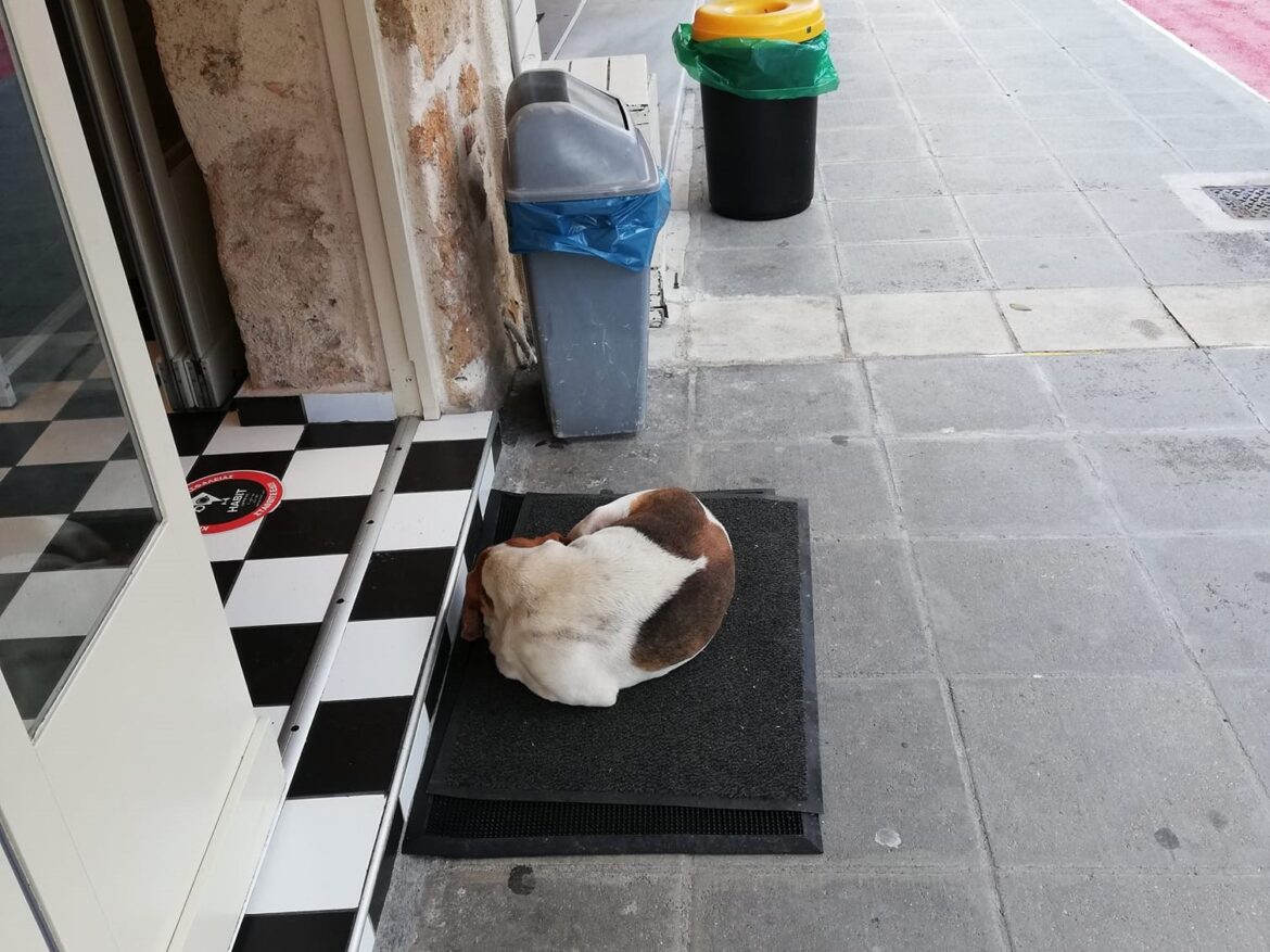 Αδεσποτάκι στο κέντρο των Χανίων κάθεται στο χαλάκι ενός καφέ γιατί κρυώνει- Ένα σπίτι για αυτό;