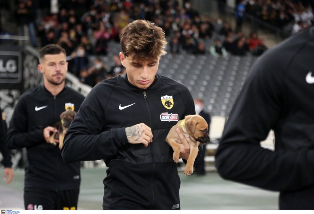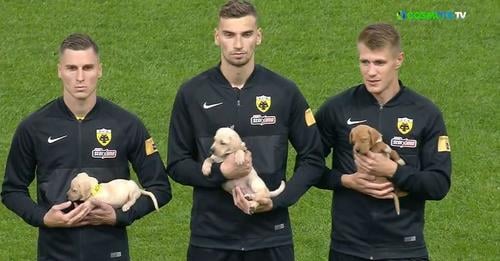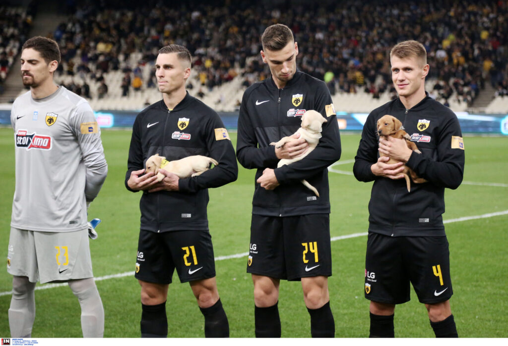 Σε μια ιδιαίτερα ξεχωριστή και πρωτότυπη κίνηση προχώρησαν οι άνθρωποι της ΑΕΚ σε συνεργασία με τον αστικό μη-κερδοσκοπικό οργανισμό “Τα Φαντάσματα του Ασπρόπυργου” https://www.facebook.com/Fantasmata.Aspropyrgou/. Συγκεκριμένα οι παίκτες της Ένωσης μπήκαν στον αγωνιστικό χώρο για την αναμέτρηση με τον Ατρόμητο κρατώντας στα χέρια τους μικρά αδέσποτα κουταβάκια που ψάχνουν σπίτι για υιοθεσία.
