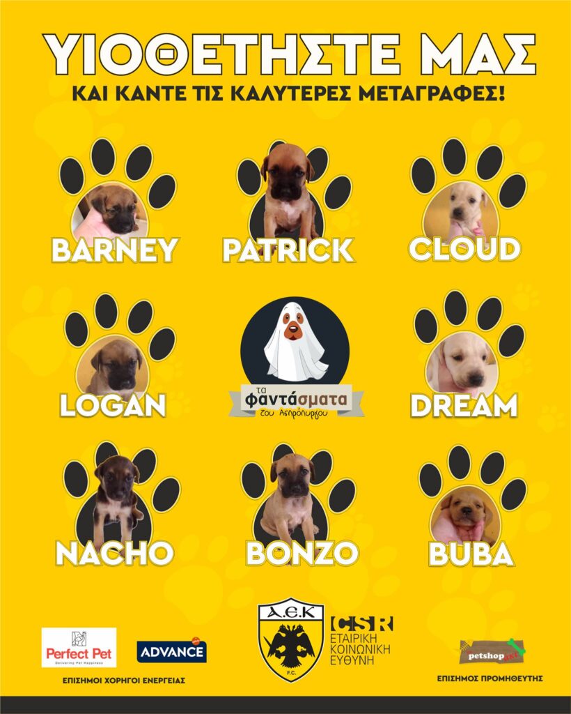 “Η ΠΑΕ ΑΕΚ αισθάνεται την υποχρέωση να ευχαριστήσει τους φιλάθλους της -και όχι μόνο- για την τεράστια ανταπόκριση που επέδειξαν στη δράση την οποία αναλάβαμε για τα αδέσποτα κουταβάκια, σε συνεργασία με τον αστικό μη-κερδοσκοπικό οργανισμό «Τα φαντάσματα του Ασπροπύργου».