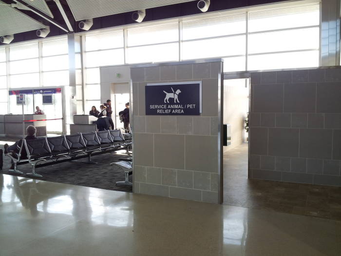 Οι…τετράποδες τουαλέτες είναι σε ειδικό μέρος μέσα στο αεροδρόμιο που λέγεται Service Animal Relief Area και έχουν όλα τα απαραίτητα. Ψεύτικο γρασίδι και νερό για εκείνα, σαπούνι, ειδικές σακούλες και ντους για εσάς ώστε να μπορείτε να πλύνετε τα ζωάκια σας.