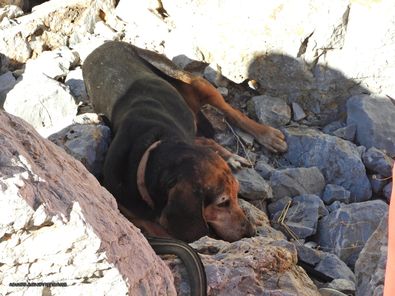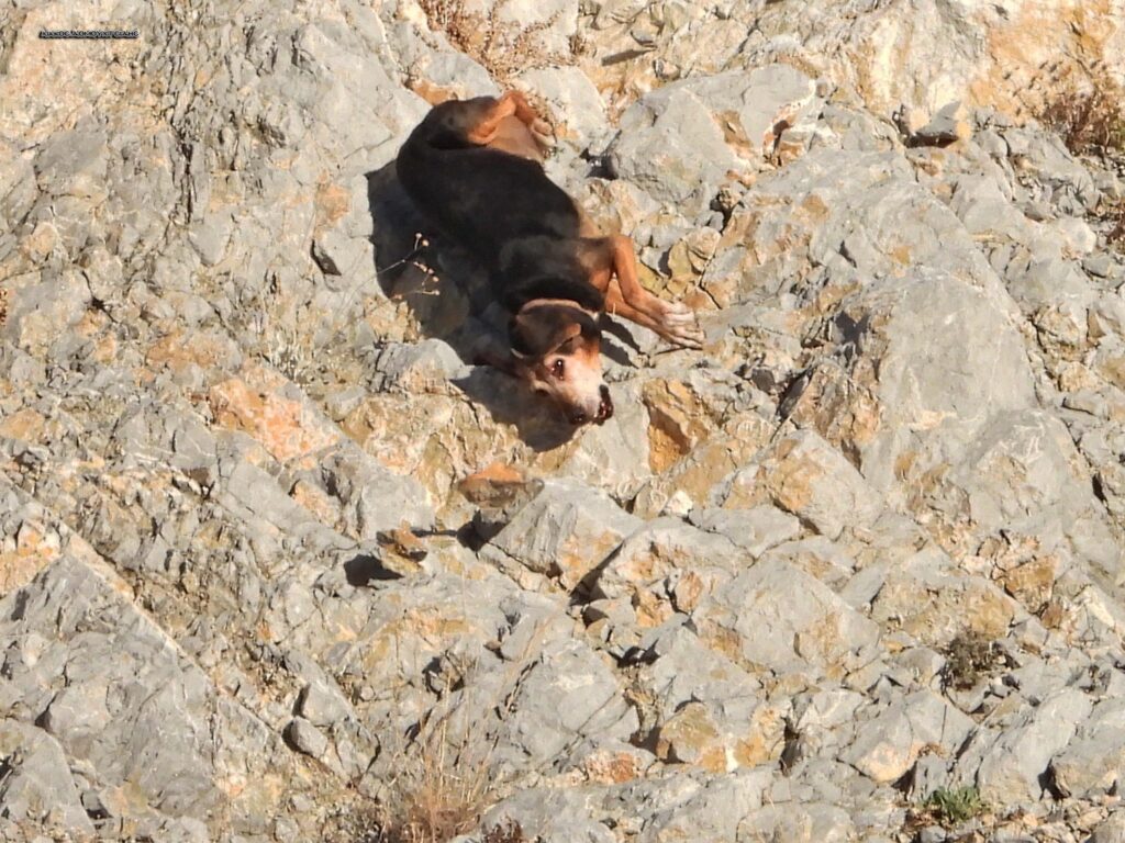 Ο κύριος που ήταν εκεί και φωτογράφιζε προσπάθησε να έρθει σε επαφή με τους υπεύθυνους ώστε να τρέξουν να σώσουν το χτυπημένο ζώο. Κλήθηκαν το ΔΙΚΕΠΑΖ και η Πυροσβεστική. Η Πυροσβεστική δεν μπορούσε να κάνει κάτι γιατί το ζώο δεν ήταν εγκλωβισμένο. Δυστυχώς το ΔΙΚΕΠΑΖ εμφανίστηκε 4 ώρες μετά. Το σκυλάκι ήταν πολύ χτυπημένο και δεν τα κατάφερε. Δεν είχε τσιπάκι. Ο κυνηγός φυσικά δεν εμφανίστηκε. Του ήταν άλλωστε άχρηστο πλέον το ζώο.