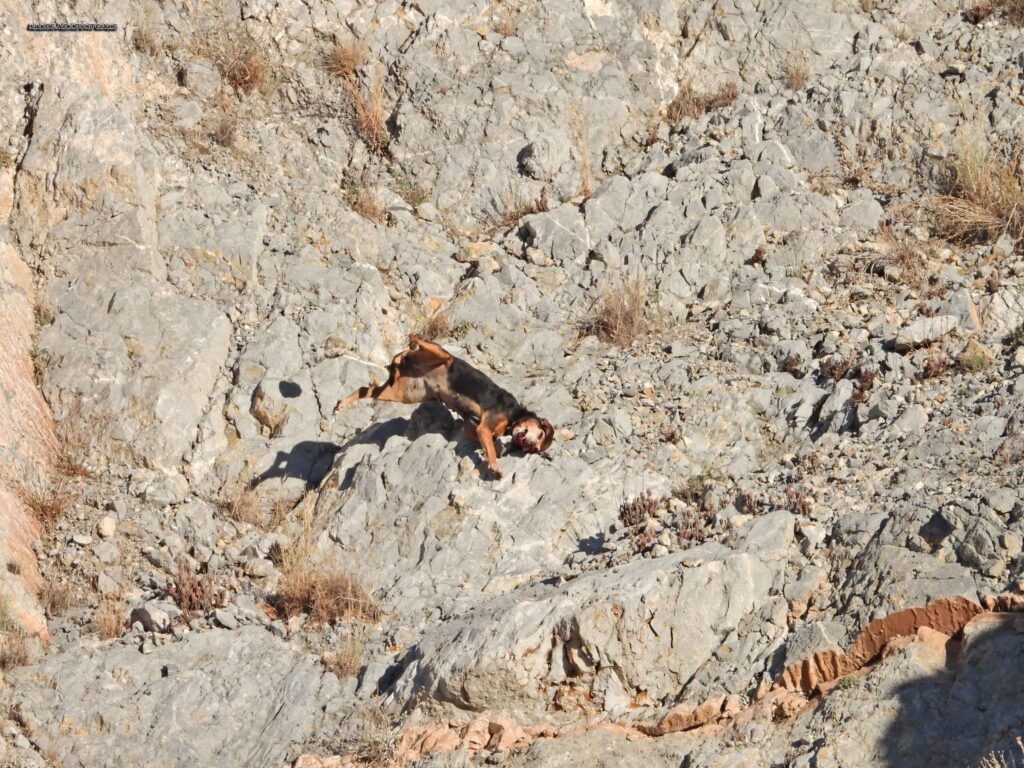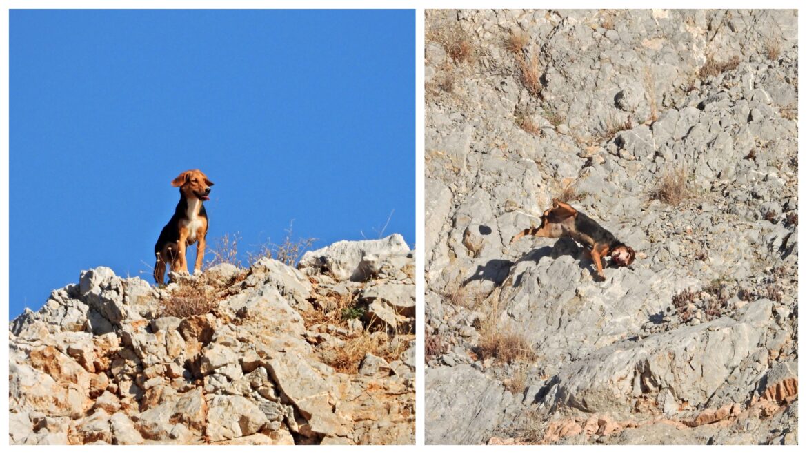 Ένα από αυτά τα σκυλιά είδε μια διερχόμενη αλεπού και άρχισε να την κυνηγάει. Όμως ακόμα και ένα τέτοιο ζώο μπορεί να κάνει το μοιραίο λάθος. Και εκεί που έτρεχε έπεσε από μεγάλο ύψος και έσκασε στην κυριολεξία, όπως λέει ο μάρτυρας, πάνω σε βράχια. Η πτώση ήταν μεγάλη. Το σκυλί χτυπούσε πότε στη ράχη, πότε στο κεφάλι, πότε στα πόδια. Ένα άλλο κυνηγόσκυλο έτρεξε να το βοηθήσει γιατί ακόμα ήταν ζωντανό.