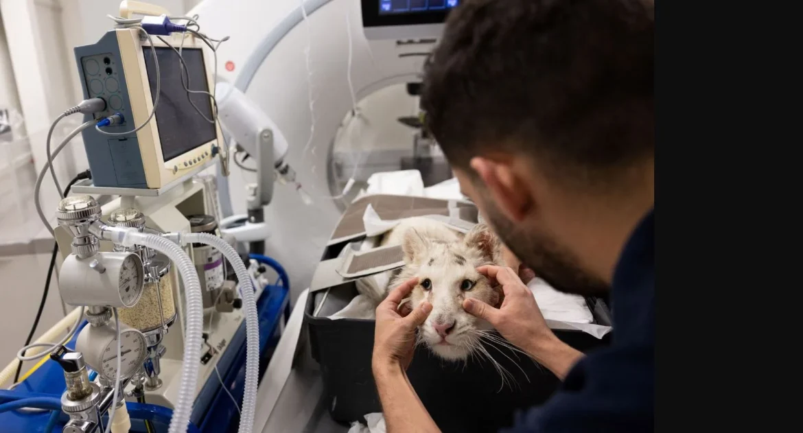 Το πρακτορείο Reuters εξασφάλισε εικόνες από τις εξετάσεις στις οποίες υποβλήθηκε το λευκό τιγράκι που δίνει έναν αγώνα επιβίωσης από την ημέρα που βρέθηκε εγκαταλελειμμένο σε κάδους σκουπιδιών έξω από το Αττικό Ζωολογικό Πάρκο.