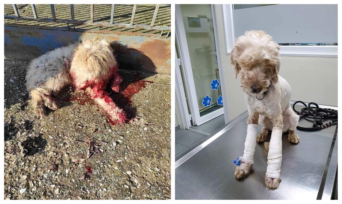 Ο σκυλάκος περιφερόταν μόνος του. Βρήκε καταφύγιο έξω από το σπίτι ενός ηλικιωμένου κυρίου όπου και τον τάιζε. Δυστυχώς τον χτύπησαν και τον εγκατέλειψαν για δεύτερη φορά στη ζωή του. Ποιος μπορεί να χτυπήσει ένα τέτοιο πλασματάκι; Και όμως.