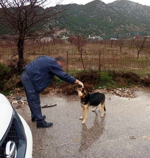 Επειδή από χθες επικρατούν πολύ κακές καιρικές συνθήκες, αμέσως ενημερώσαμε τον υποδιοικητή του ΑΤ Πλατανιά κ. Ματθαίο Ιγγλεζάκη, ο οποίος μετέβη με ένα περιπολικό και έναν αστυνομικό. Ευτυχώς κατάφεραν να εντοπίσουν το σκύλο. Ο σκυλάκος ήταν κουλουριασμένος σε μια λακούβα με λασπόνερα, ενώ είχε αρχίσει ήδη να χιονίζει.
