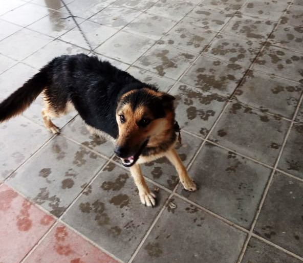 Δεχτήκαμε δύο ανώνυμα τηλεφωνήματα για την ύπαρξη ενός αλυσοδεμένου σκύλου στην άκρη του δρόμου, στο οροπέδιο του Ομαλού, χωρίς κανένα κατάλυμα για προστασία, ούτε νερό και τροφή.