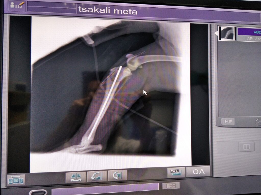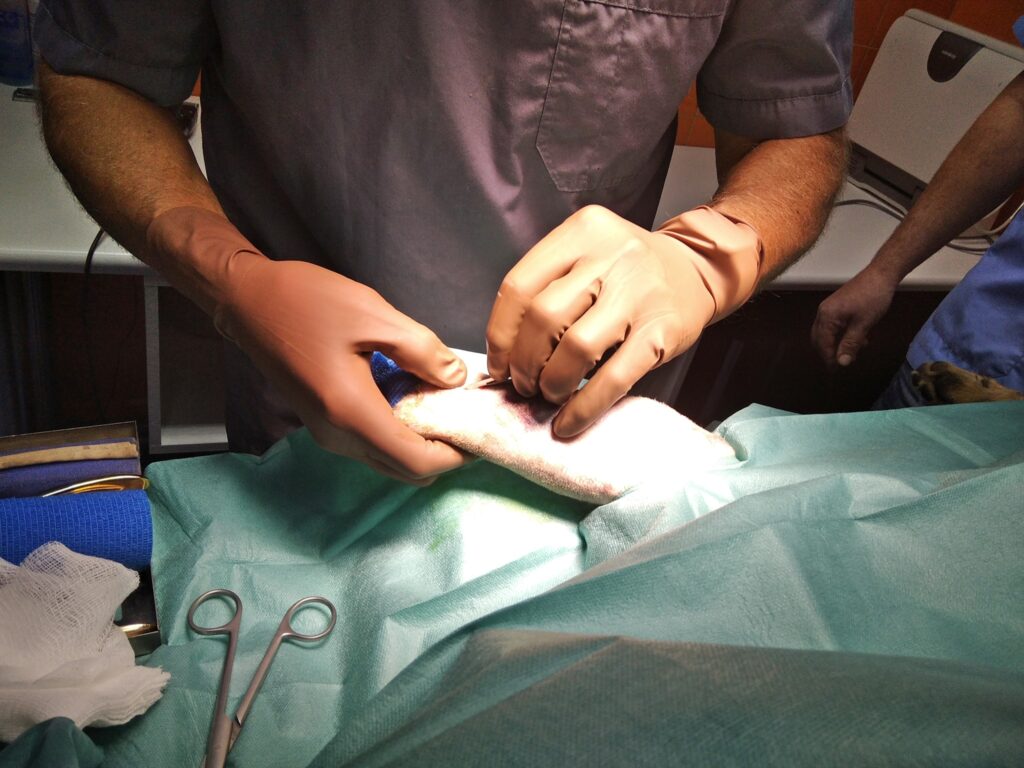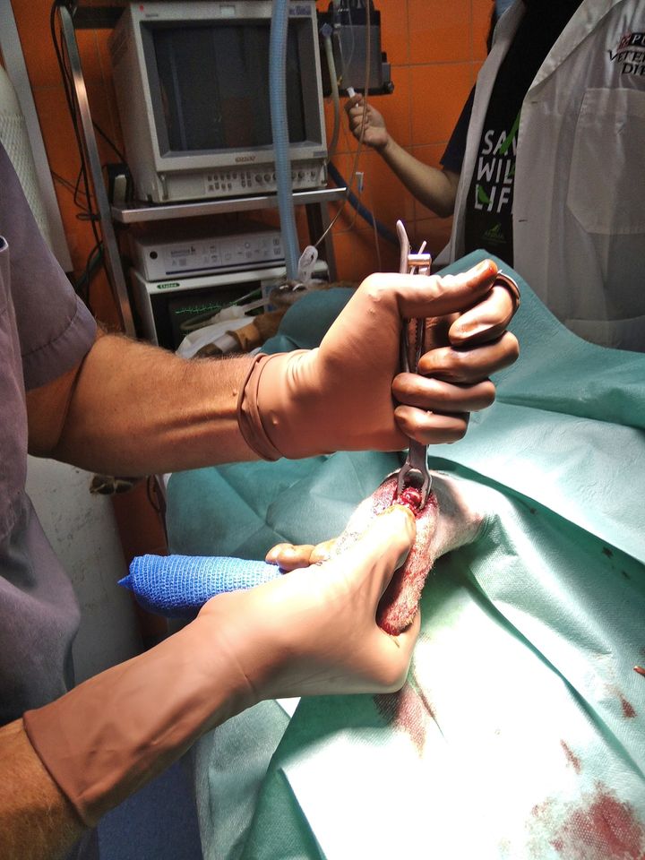 Το χειρουργείο, όπως διαβάζουμε στη σελίδα της ΑΝΙΜΑ, έγινε στο Κτηνιατρικό Κέντρο Περιστερίου. Την οστεοσύνθεση με τοποθέτηση ήλου ενδομυελικά πραγματοποίησε ο χειρούργος κτηνίατρος Μπάμπης Χαραλαμπίδης με τη βοήθεια του Αχιλλέα Ακρίβου, κτηνιάτρου μέλους του Δ.Σ. της ΑΝΙΜΑ, και επικουρικά βρισκόταν ο κτηνίατρος και συνεργάτης της ΑΝΙΜΑ Γρηγόρης Μαρκάκης.
