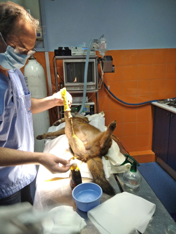 Με επιτυχία χειρουργήθηκε το μικρό τσακάλι, που βρέθηκε χτυπημένο αυτές τις μέρες, στον υγρότοπο της Βαυρώνας, στην άκρη του δρόμου. Το ζώο ανέλαβε η ΑΝΙΜΑ, ΑΝΙΜΑ – Σύλλογος Προστασίας και Περίθαλψης Άγριας Ζωής . Οι εθελοντές της το μετέφεραν στον κτηνίατρο όπου διαπιστώθηκε κάταγμα κνήμης. Τοποθετήθηκε νάρθηκας και φλεβοκαθετήρας και χορηγήθηκαν τα δέοντα φάρμακα. Τελικά όμως χρειάστηκε χειρουργείο, το οποίο, όπως είδαμε, πήγε καλά.