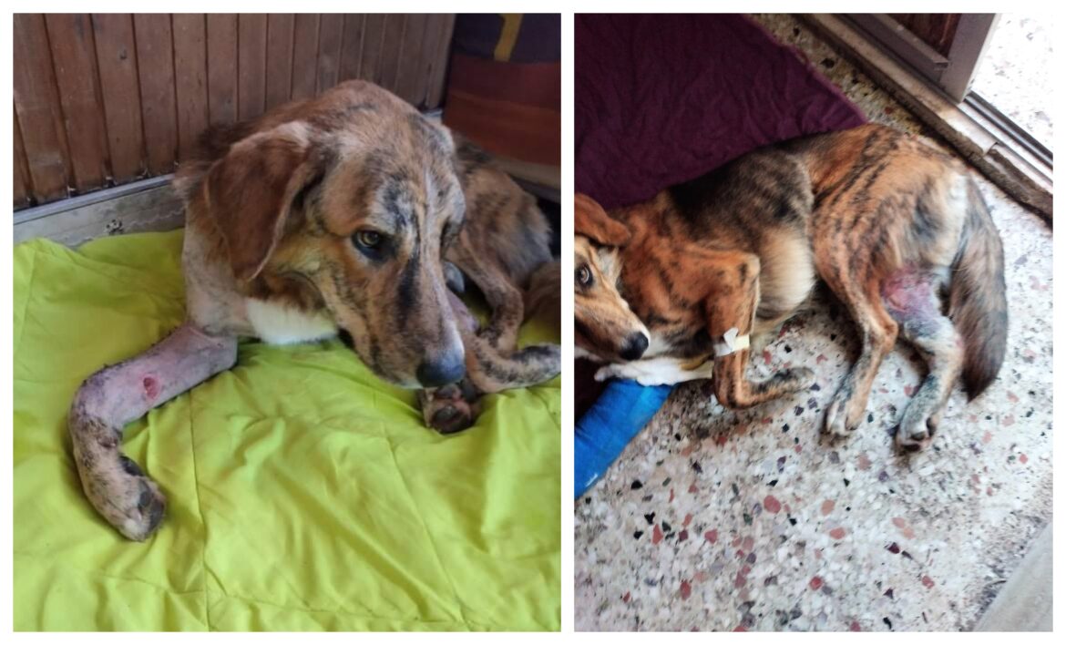 Ο σκυλάκος μεταφέρθηκε στο κτηνιατρείο. Οι ακτινογραφίες έδειξαν την αλήθεια. Και τα 2 ποδαράκια από τη δεξιά πλευρά έφεραν σοβαρά κατάγματα. Το μπροστά δεξί πόδι με συντριπτικό κάταγμα αντιβραχίου. Το πίσω δεξί πόδι εγκάρσιο κάταγμα μηριαίου. Η λεκάνη από το ατύχημα υπέστη κάταγμα λαγονίου από την αριστερή πλευρά. Για αυτό και οι αφόρητοι πόνοι. Το ζώο χρειάστηκε άμεσα χειρουργείο. Τα έξοδα είναι πολλά. Το καταλαβαίνουμε από τη ζημιά που έχει πάθει.