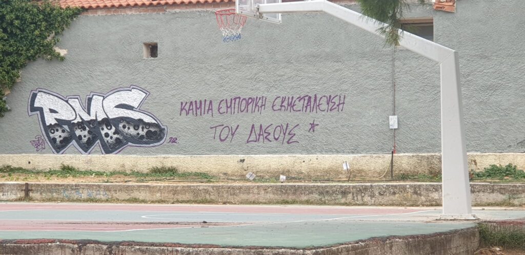Οι άνθρωποι του ΙΓΕ (Ινστιτούτο Γεωπονικών Σπουδών) αποφάσισαν, όπως γράφει ο κ. Καραμέρος, να οργώσουν με τρακτέρ και να πετσοκόψουν το δάσος για να το καθαρίσουν όπως είπαν. Με άδεια και εποπτεία του δασαρχείου.