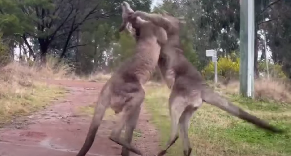 Όπως αναφέρουν πληροφορίες του «ΤΜΖ», δύο καγκουρό έμπλεξαν σε καβγά, στην Καμπέρα της Αυστραλίας. Κάποιος που περνούσε από εκεί δεν έχασε ευκαιρία και άρχισε να βιντεοσκοπεί τα δύο ζώα.