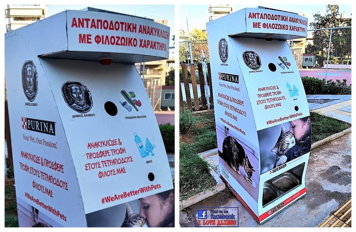 Ο Δήμος συλλέγει τα συγκεντρωμένα στο μηχάνημα ανακυκλώσιμα και τα μεταφέρει στο εργοστάσιο ανακύκλωσης των Δήμων. Με τον τρόπο αυτό, και οι τετράποδοι φίλοι μας φροντίζονται και το περιβάλλον προστατεύεται! Η Δημοτική αρχή ευχαριστεί πολύ την Purina για τη χορηγία και τη δημιουργική συνεργασία. Ευχαριστεί επίσης θερμά όλους τους κατοίκους του Αλίμου που θα «ταΐζουν» το μηχάνημα με ανακυκλώσιμα και ταυτόχρονα θα παρέχουν στα αδέσποτα ποιοτική ζωοτροφή!