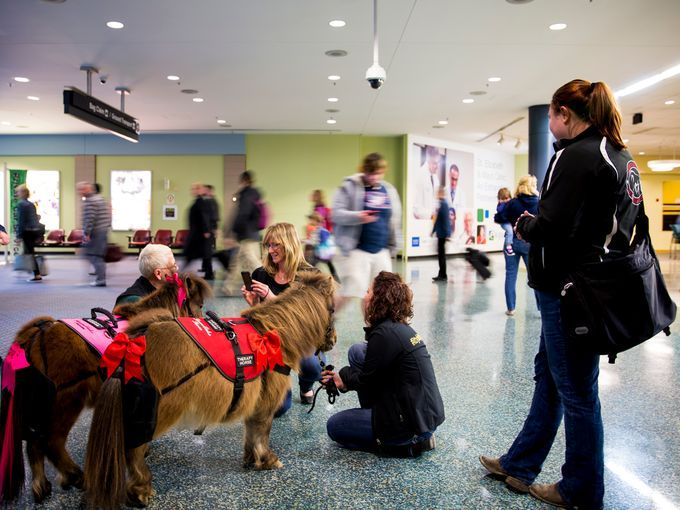 Τον καλύτερο τρόπο βρήκαν οι αρμόδιες αρχές και το αεροδρόμιο του Σινσινάτι στο Οχάιο των Ηνωμένων Πολιτειών για να απομακρύνουν το άγχος της πτήσης από τους ταξιδιώτες. Δημιούργησαν ένα ειδικό χώρο με αλογάκια πόνυ όπου θα λειτουργούν ως ζώα- θεραπείας.