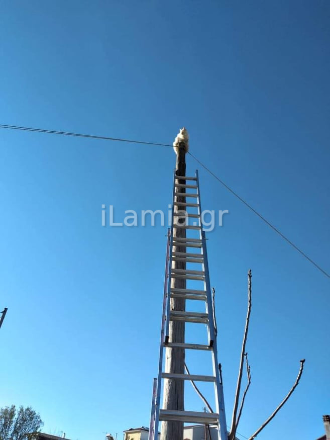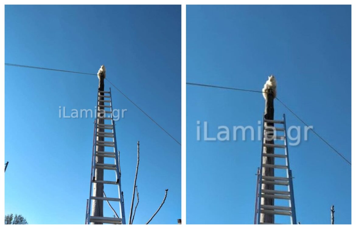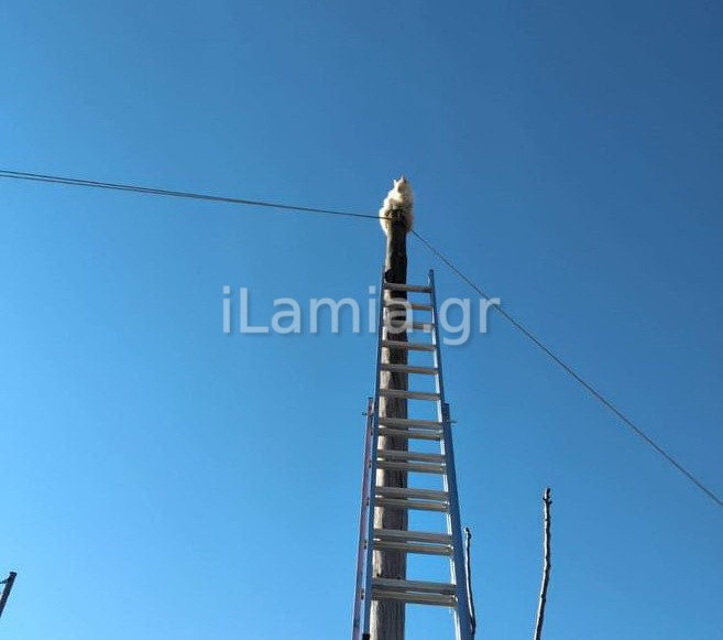 Δομοκός: Διάσωση γάτας που είχε ανέβει στην κορυφή κολώνας του ΟΤΕ
