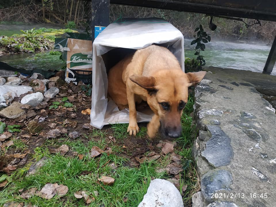 Η σκυλίτσα ήταν εκτεθειμένη στο πολύ κρύο και την υγρασία και για αυτό θα έπρεπε να γίνει κάτι. Ο Δήμος φυσικά δεν υπήρχε περίπτωση να σκεφτεί το οτιδήποτε και αυτό δεν μας κάνει καμία εντύπωση.