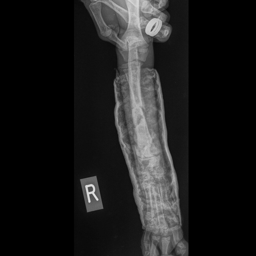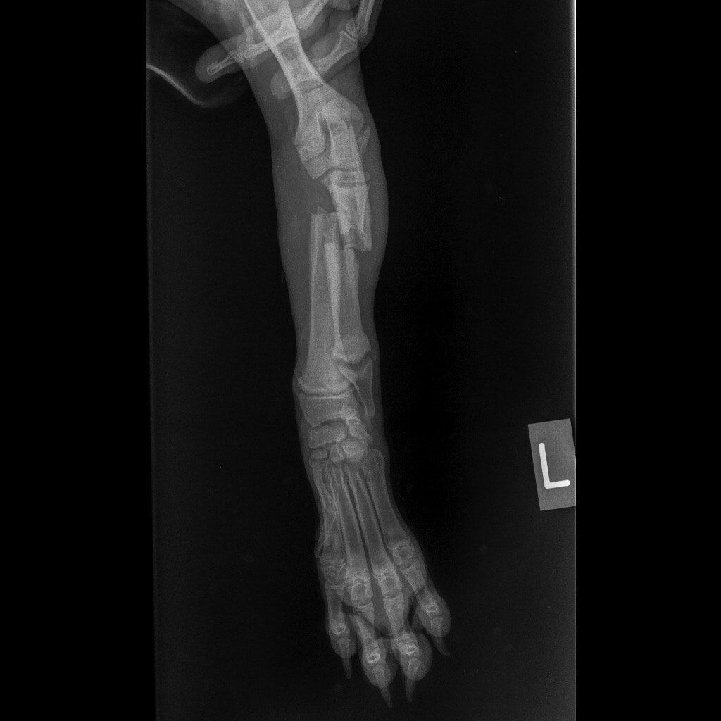 Η Maria Arkomani αναφέρει χαρακτηριστικά: «Δυστυχώς πολλοί ορθοπεδικοί έλειπαν και κάποιοι άλλοι δεν αναλάμβαναν το χειρουργείο του λόγω δυσκολίας και συγχρόνως επειδή είχαν περάσει μέρες από το σπάσιμο. Αμέσως πήγαμε στο κτηνιατρείο της Lena Kon για να δοθούν οι πρώτες βοήθειες από τον Νίκο Μαργαρίτη όπου τον ευχαριστούμε από καρδιάς. Βγήκαν ακτινογραφίες και έδειξαν τη ζημιά που είχε υποστεί αυτό το πλάσμα. Στο ένα πόδι μπήκε γύψος αλλά το άλλο ήθελε χειρουργείο. Στείλαμε σε πολλούς γιατρούς τις ακτινογραφίες αλλά οι απαντήσεις ήταν αρνητικές καθώς ήταν δύσκολο το χειρουργείο σε να κουτάβι με τέτοιο πρόβλημα. Ο μοναδικός γιατρός που μας απάντησε άμεσα και μπόρεσε να αναλάβει τον Νικόλα μας και να πάρει το ρίσκο του χειρουργείου είναι ο ορθοπεδικός Antonios Lionakis. Ένα χειρουργείο πάρα πολύ δύσκολο, με ρίσκο αλλά πρέπει να γίνει..»