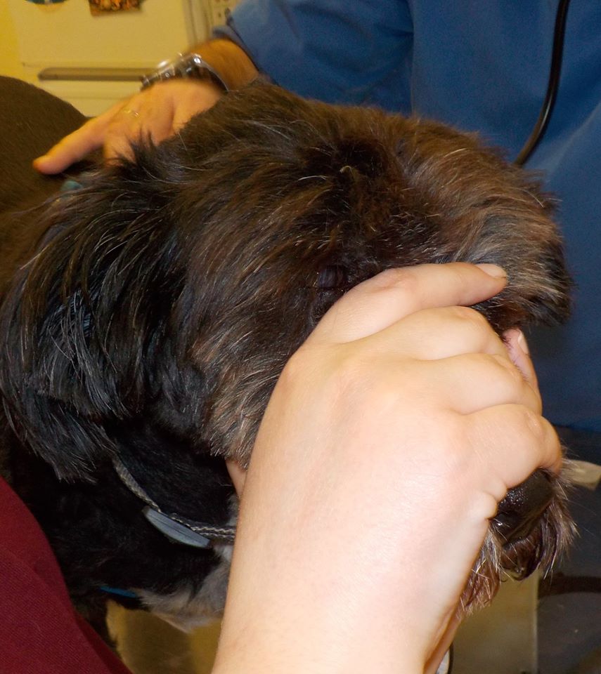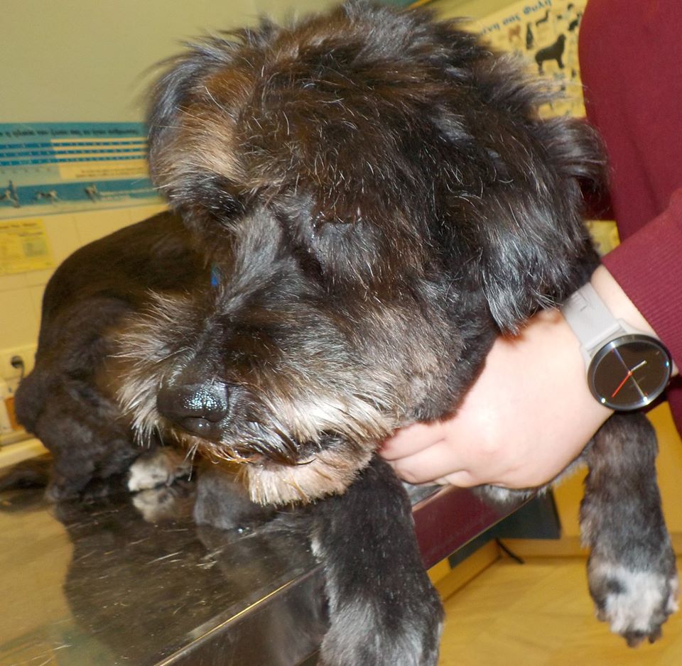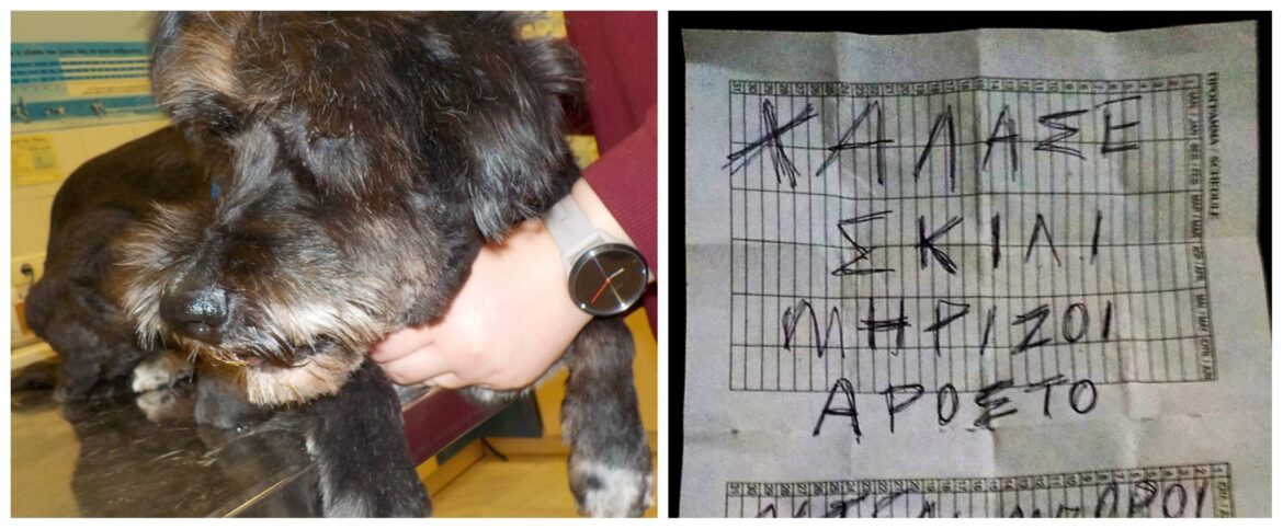 Η σκυλίτσα βρέθηκε πριν από μερικές μέρες, νύχτα, παρατημένη στο πάρκο Ναθαναήλ, στα Πατήσια. Μόνη και τρομαγμένη, ίσα που μπορούσες να τη διακρίνεις μέσα στο σκοτάδι. Στο χαλασμένο περιλαίμιό της βρισκόταν ένα χαρτάκι που αυτό που μπορούσες να καταλάβεις είναι οι λέξεις “Χάλασε, μυρίζει και άρρωστο”. Το ζώο ήταν άρρωστο και μύριζε. Η κατάστασή της ήταν ιδιαίτερα σοβαρή.