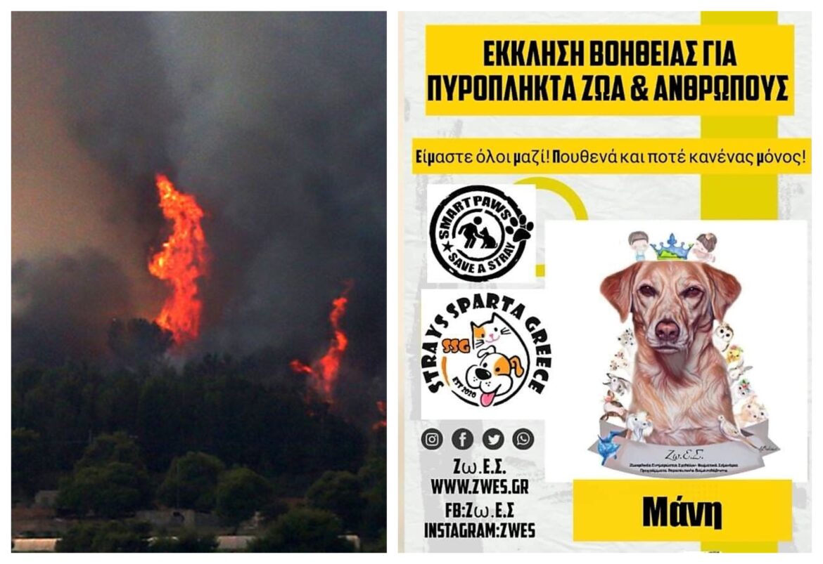 Στη Μάνη Λακωνίας η καταστροφή από τη φωτιά είναι ανυπολόγιστη. Κάηκαν αμέτρητα ζώα, άνθρωποι έχασαν τις περιουσίες τους και έμειναν στην κυριολεξία χωρίς τίποτα. Γίνεται έκκληση για βοήθεια. Σας παρακαλούμε, ας κάνουμε ό,τι μπορούμε να βοηθήσουμε ανθρώπους και ζώα να επιβιώσουν.
