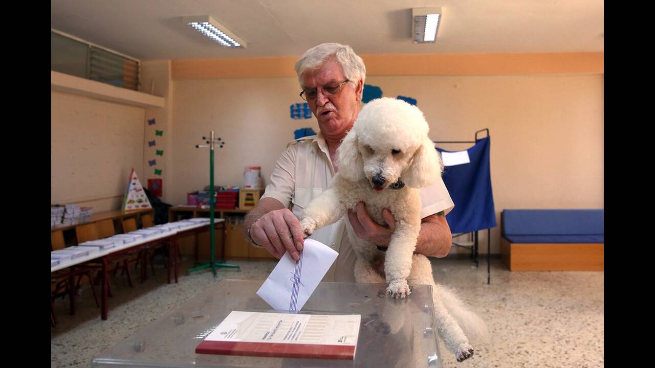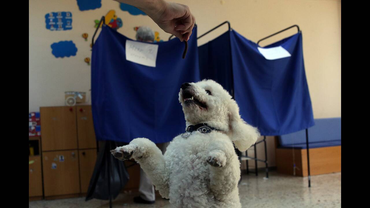 Την παράσταση έκλεψε χτες σε εκλογικό κέντρο της Αθήνας ένα τετράποδος…ψηφοφόρος που πήγε με τον κηδεμόνα του να ασκήσει και αυτός το εκλογικό του δικαίωμα.