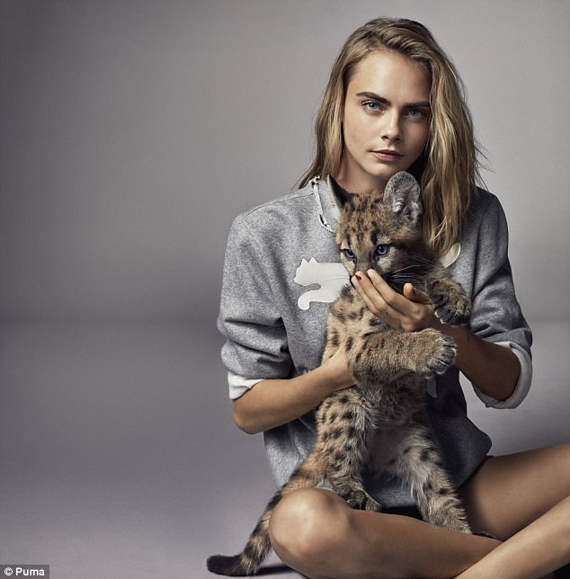 H 24χρονη Cara πόζαρε στο φακό με την καλύτερη παρέα, ένα μικρό πούμα, το οποίο έκλεψε την παράσταση, εντυπωσιάζοντας τελικά περισσότερο και από το μοντέλο αλλά και από τα ρούχα της εταιρείας.