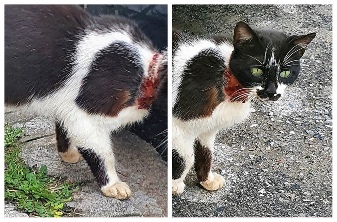 Οι εθελοντές βρήκαν δυστυχώς δύο γατούλες με πληγές στο λαιμό. Κατάφεραν και έπιασαν τη μια και τη μετέφεραν στο κτηνιατρείο του κ. Δασκαλόπουλου για περίθαλψη και στη συνέχεια στείρωση.