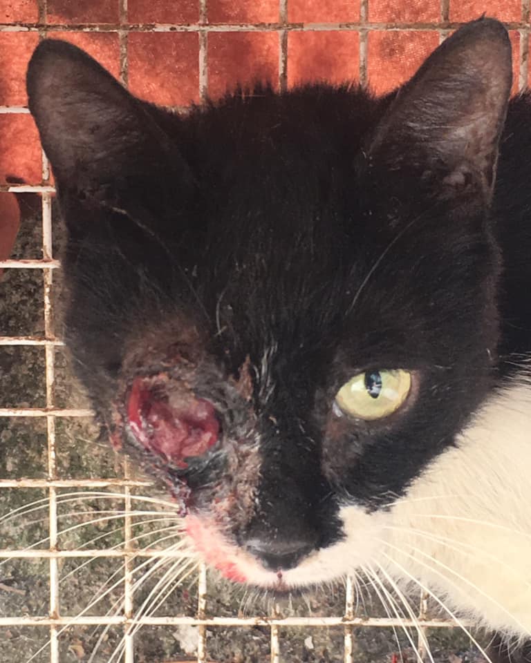 Οι εθελοντές της ομάδας ενημερώθηκαν για το επείγον αυτό αυτό περιστατικό που ήταν στην περιοχή των Καμινίων στον Πειραιά. Ο γάτος κυκλοφορούσε με μάτι πρησμένο και με το ένα του κόκαλο να φαίνεται κάτω από το γδαρμένο δέρμα του. Όπως καταλαβαίνουμε ήταν ζήτημα ζωής ή θανάτου να πιαστεί ώστε να νοσηλευτεί, κάτι που ήταν δύσκολο καθώς είχαν γίνει προσπάθειες από διάφορους εθελοντές με παγίδα χωρίς όμως να έχουν αποτέλεσμα.