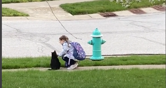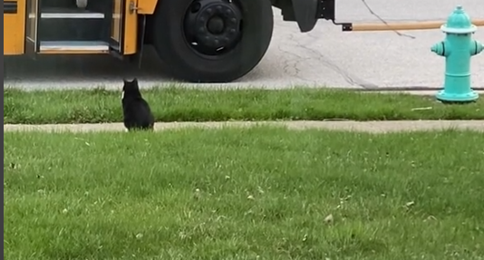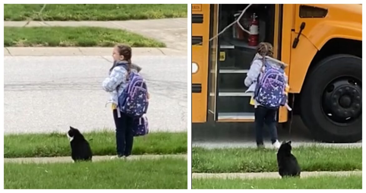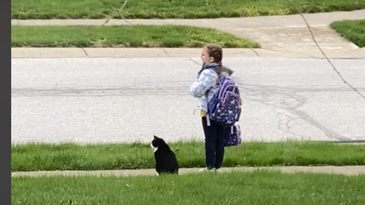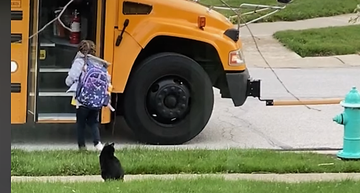 Φοβερός γατούλης συνοδεύει κάθε μέρα το κοριτσάκι της οικογένειας για να πάρει το σχολικό