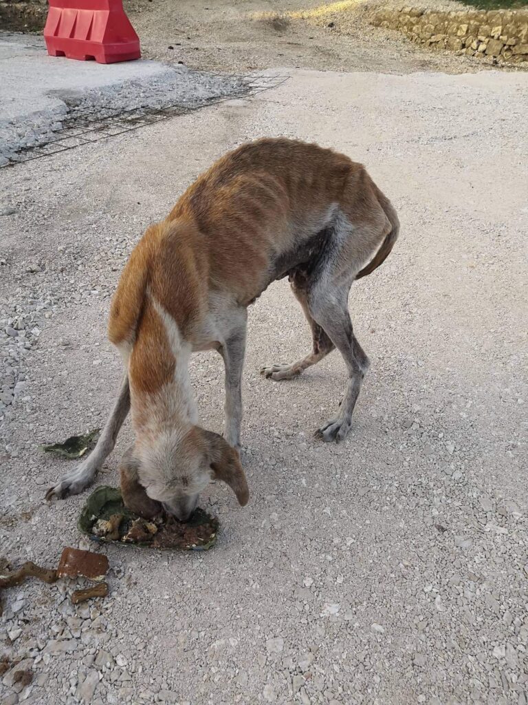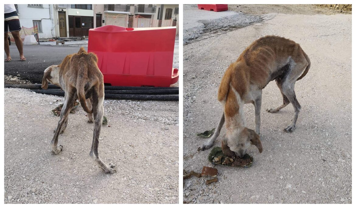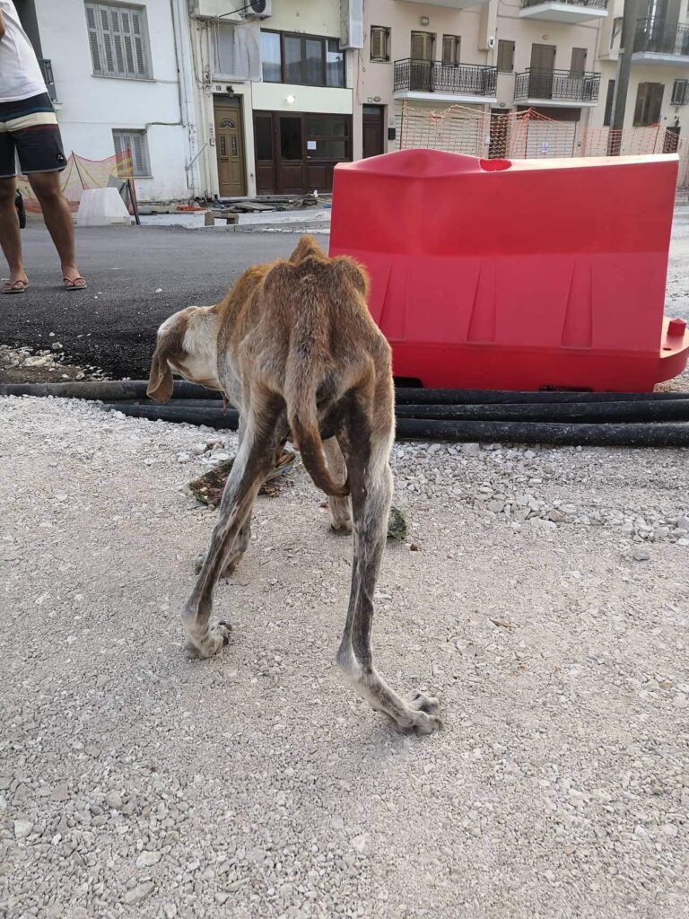 Όπως βλέπουμε και στις φωτογραφίες ο σκύλος αργοπεθαίνει στην κυριολεξία καθώς είναι κοκαλιασμένος και σίγουρα άρρωστος. Θα πρέπει το συντομότερο να μεταφερθεί σε γιατρό.