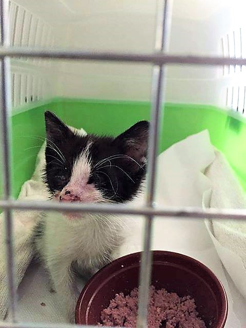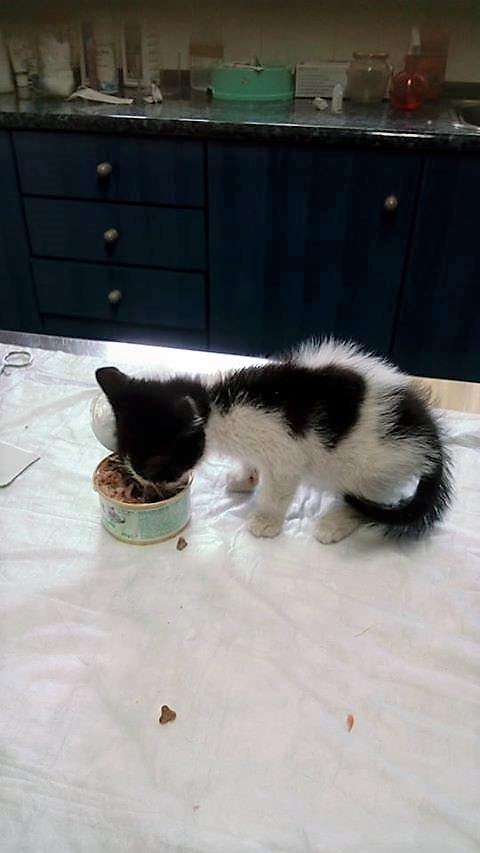 Ένα γλυκύτατο μικρό ασπρόμαυρο γατάκι, μόλις ενός μήνα, θηλυκό, που είναι τυφλό, ψάχνει άμεσα σπίτι. Εκεί που βρίσκεται δεν μπορεί να μείνει άλλο. Και είναι κρίμα να πάει στο δρόμο. Είναι χαρούμενο και παιχνιδιάρικο. Αυτό που θέλει είναι να του δοθεί μια δεύτερη ευκαιρία.