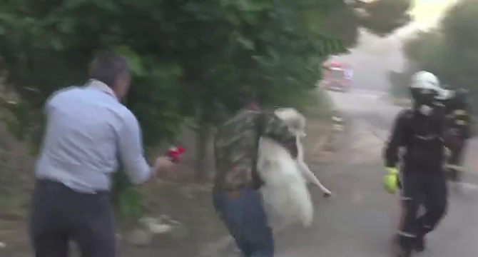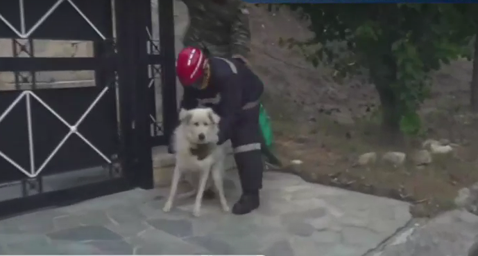 Πυροσβέστες και εθελοντές την άκουσαν μέσα και πήδησαν στην αυλή του σπιτιού. Την πήραν και την απεγκλώβισαν. Στη συνέχεια τα ίχνη της εξαφανίστηκαν.