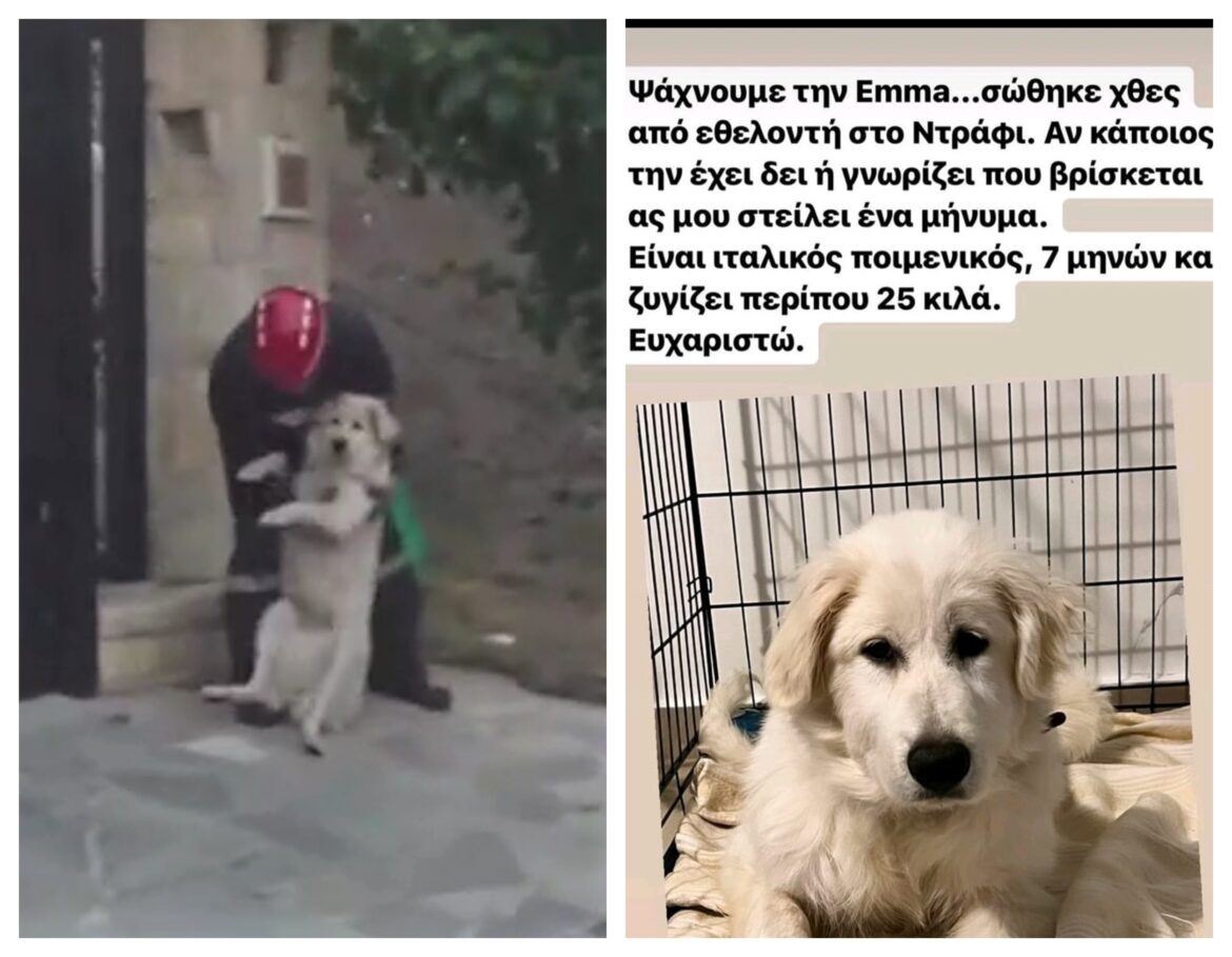 Η διάσωση του σκύλου έγινε viral τη μέρα που μαινόταν η φωτιά στο Ντράφι. Στο σπίτι ήταν μόνη της η Έμμα καθώς οι άνθρωποί της ήταν στη δουλειά τους. Όταν επέστρεφαν, δεν τους άφησαν να περάσουν. Περνούσαν μόνο εθελοντές. Γνωρίζουμε όλοι ότι έτσι γίνεται σε αυτές τις περιπτώσεις. Η φωτιά πλησίαζε τα σπίτια και εκείνη κινδύνευε.