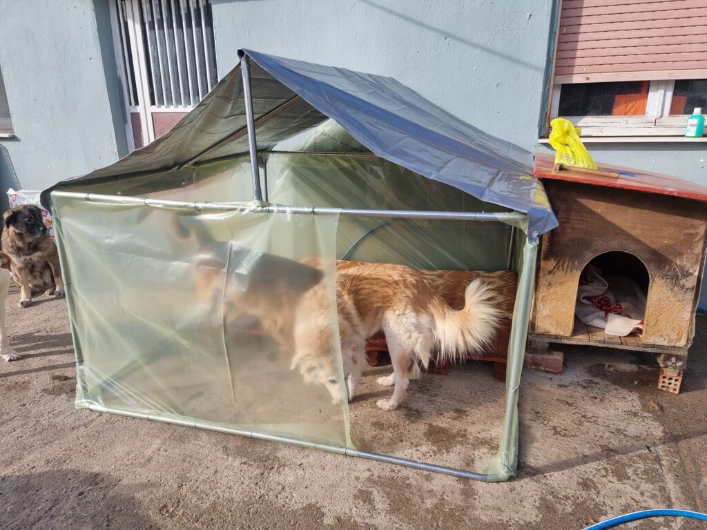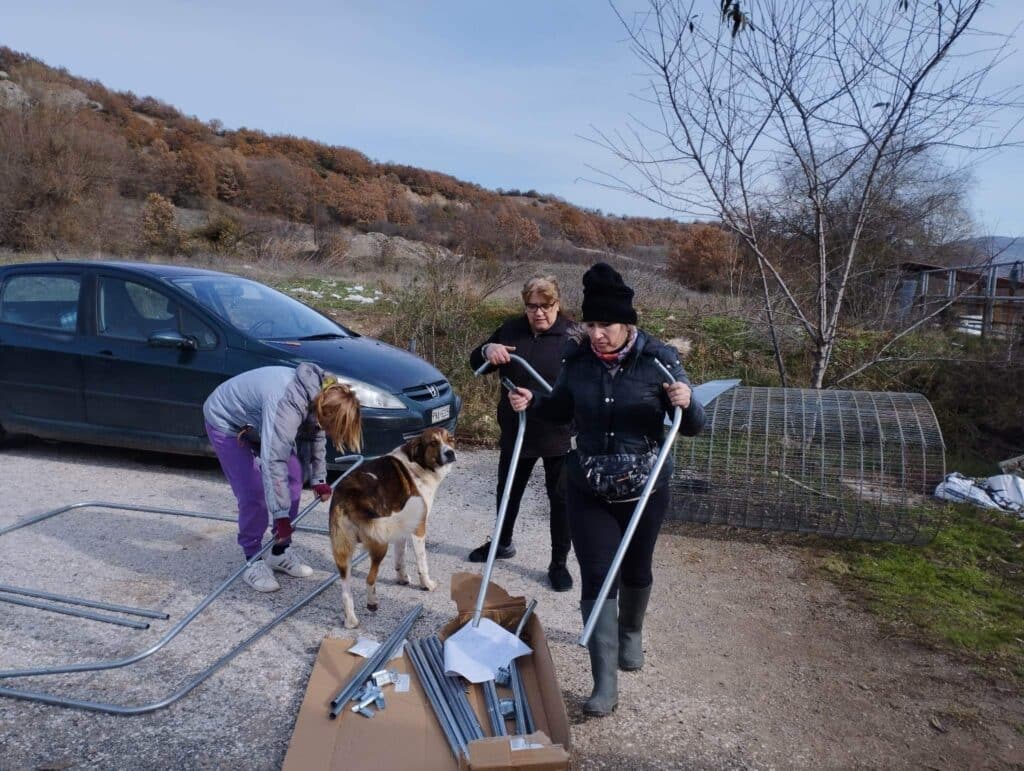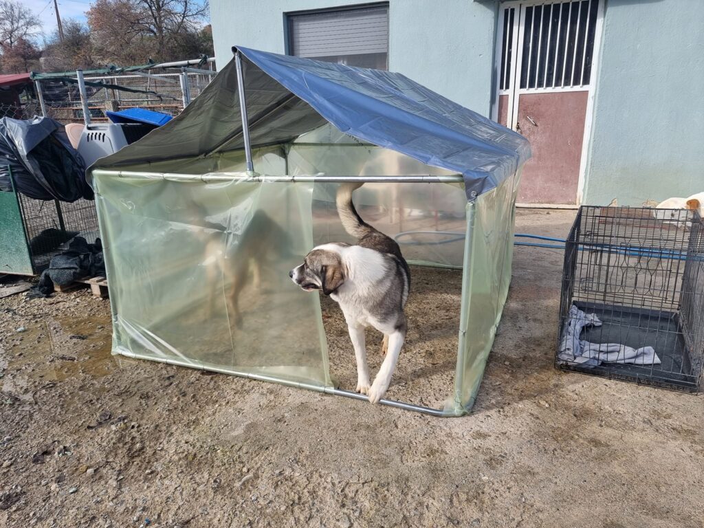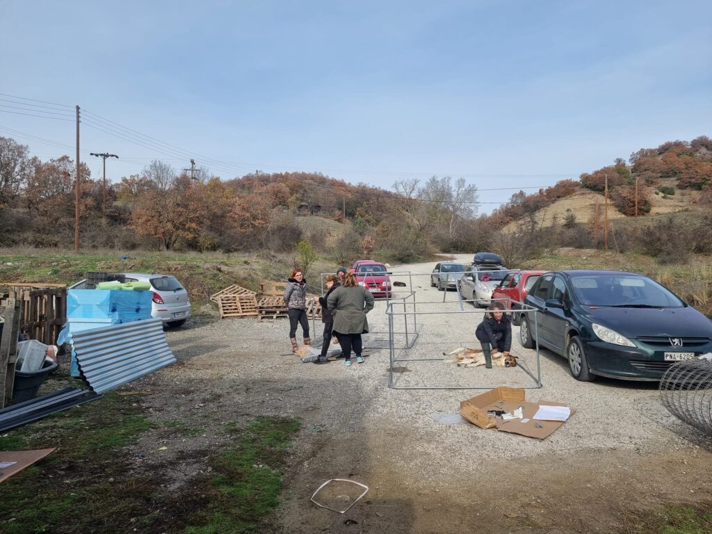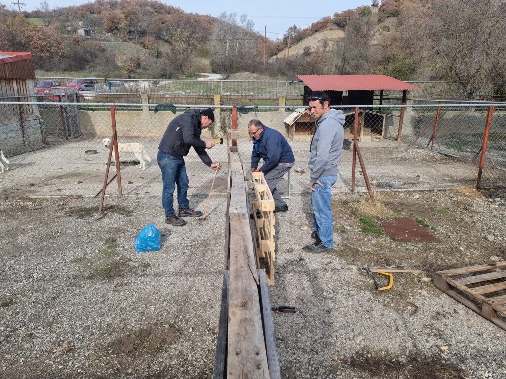 Και οι εργασίες ξεκίνησαν. Το καταφύγιο φιλοξενεί πάνω από 100 αδέσποτα σκυλάκια. Έτσι είχαν αρκετή δουλειά. Έφτιαξαν σπιτάκια, χώρισαν τους χώρους και έστρωσαν ζεστά στρωσίδια ώστε να είναι υποφερτή η κατάσταση εκεί.