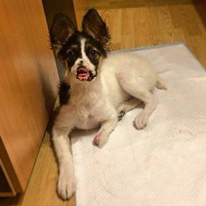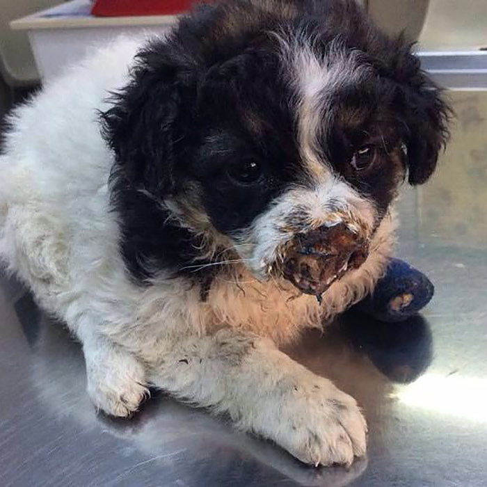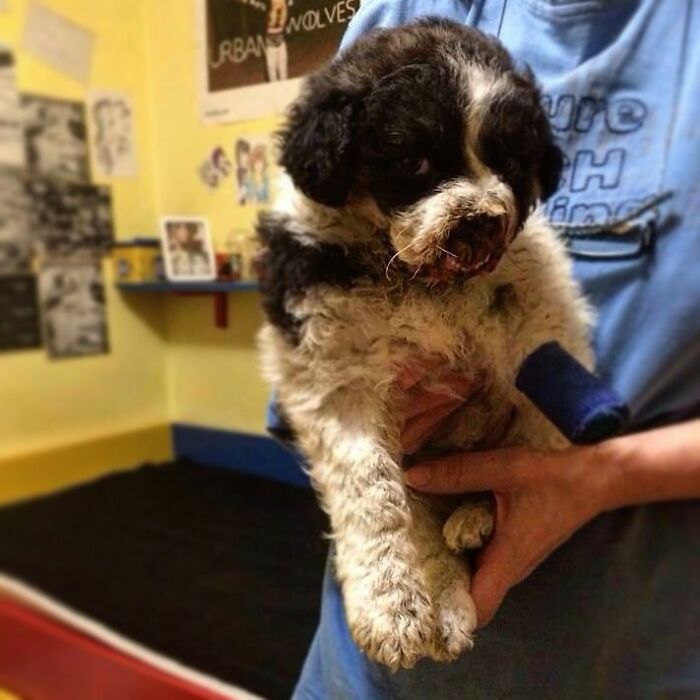 Η σκυλίτσα γεννήθηκε σε ένα εργοστάσιο στη Ρουμανία. Χτυπήθηκε κουταβάκι από ένα τρένο και οι εργαζόμενοι την είδαν να χτυπιέται και να κλαίει από τους πόνους. Η γυναίκα που την πήγε στον κτηνίατρο ανέφερε ότι ήταν τόσο χάλια που μύριζε θάνατο. Κατά τη μεταφορά της ήταν αδύνατον να μην ανοίξουν παράθυρο στο αυτοκίνητο. Της έλειπε η μύτη, το μισό πόδι και η ουρά. Χρειάστηκαν πολλές επεμβάσεις να γίνουν κάποια πράγματα που έπρεπε να γίνουν άμεσα. Η πρώτη σκέψη, όπως είπαμε πιο πάνω, ήταν η ευθανασία. Αλλά ευτυχώς δεν έγινε.