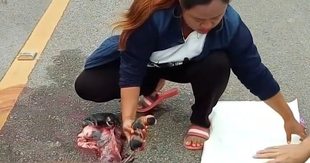 Αμέσως σταμάτησε και κατέβηκε από το αυτοκίνητο και πήγε εκεί που ήταν το ζώο για να δει τι θα κάνει. Δυστυχώς ήταν νεκρό. Η γυναίκα παρατήρησε ότι ήταν θηλυκό και ετοιμόγεννο. Ακούμπησε την κοιλιά της σκυλίτσας και άκουσε την καρδιά ενός κουταβιού να χτυπάει.