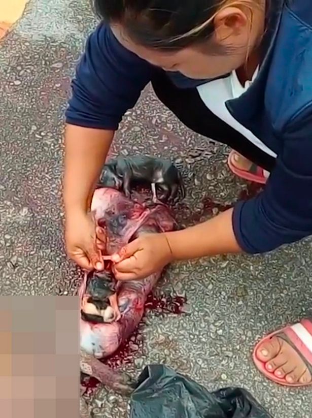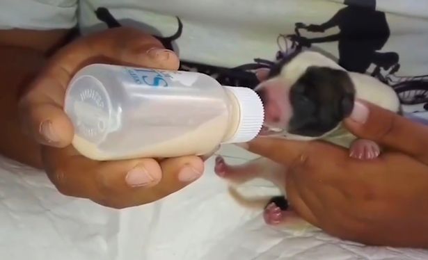 Έτσι χωρίς να το σκεφτεί αποφάσισε να κάνει καισαρική τομή στη νεκρή σκυλίτσα για να βγάλει τα κουτάβια της. Τα κουταβάκια ήταν 4 αλλά δυστυχώς ένα ήταν μόνο ζωντανό, το οποίο έκανε προσπάθειες να αναπνεύσει.