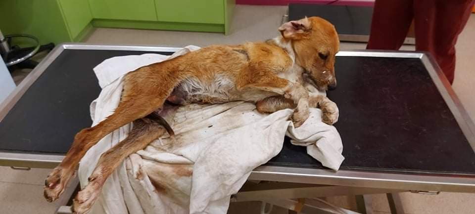 Μια κυρία ενημέρωσε τους ανθρώπους του Κέντρου Προστασίας Αδέσποτων. Ο Σπύρος Κουμούλας Spyros Koymoylas το μετέφερε στον κτηνίατρο. Το ζώο είχε πολλές κακώσεις. Είχε χτυπήσει το κεφάλι του και κινδύνευε το ένα του μάτι. Η αποθεραπεία του θα έπαιρνε χρόνο.